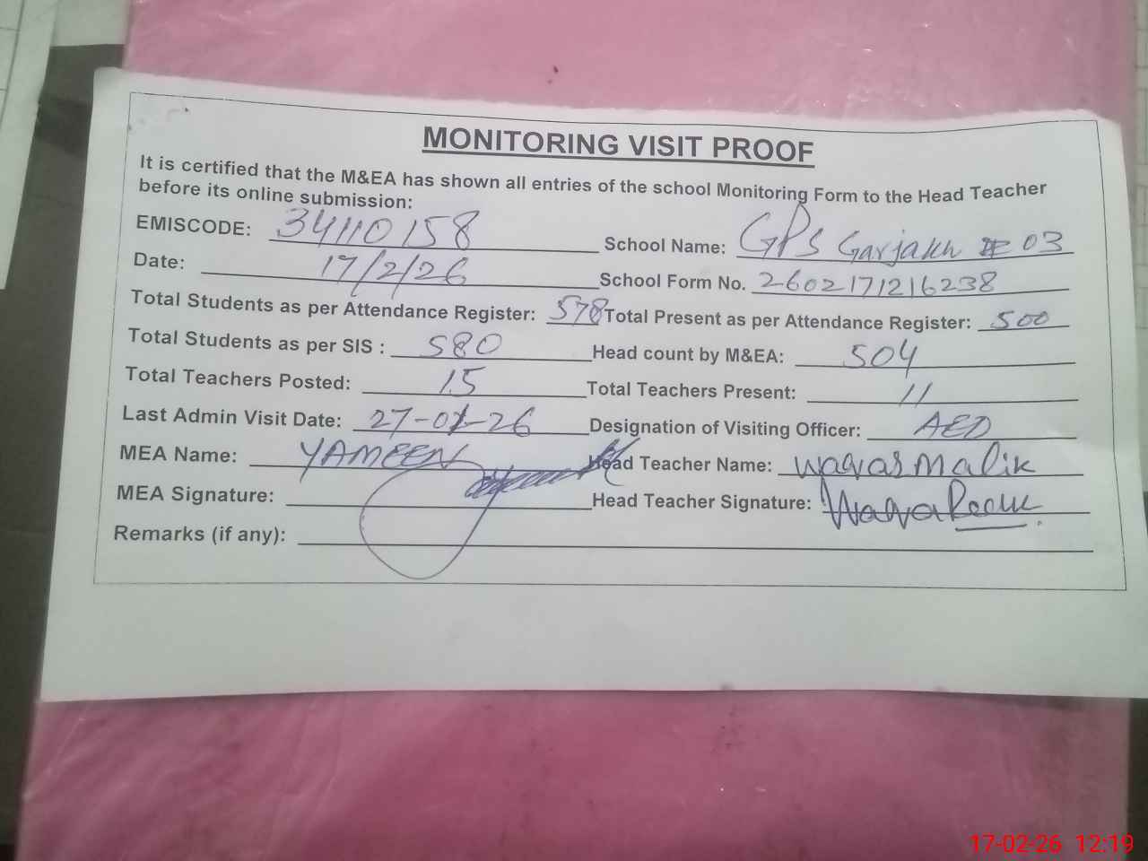 | EMIS Code: 34110158 | Name of School: GPS GHARJAKH NO.3 | |||