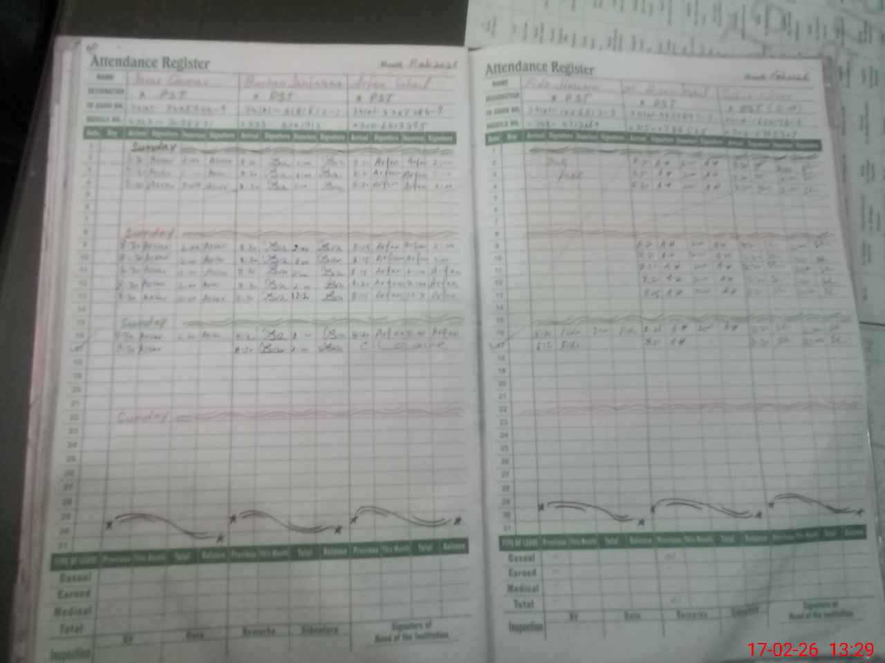 | CNIC | Full Name | Designation | R/C | Absence During Last Calender Month |