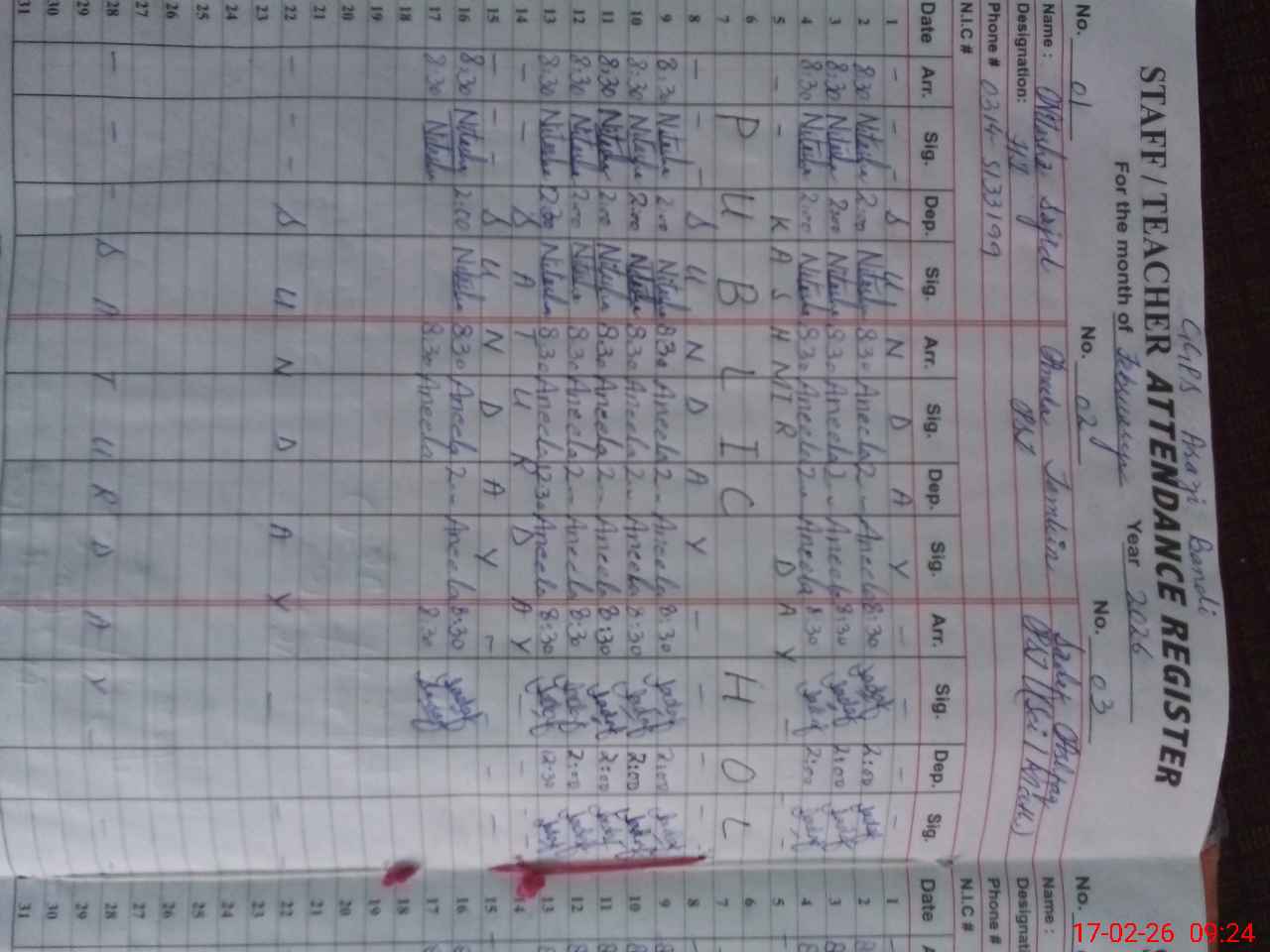 | Name: Ni**** Sa**** Designation: (School Headmaster's/Headmistress's) PST Phone/Cell Number: 03**** |