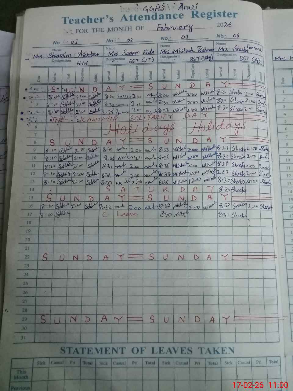 | 37**** | Sa**** Fi**** | SST Computer Science | Regular | 0 | 0 | 0 | 0 | 0 | 0 | 0 | 0 | 0 | Casual |
