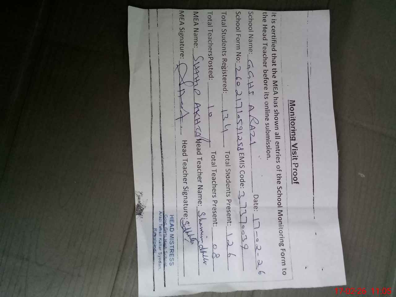 | EMIS Code: 37370039 | Name of School: GGHS ARAZI | |||