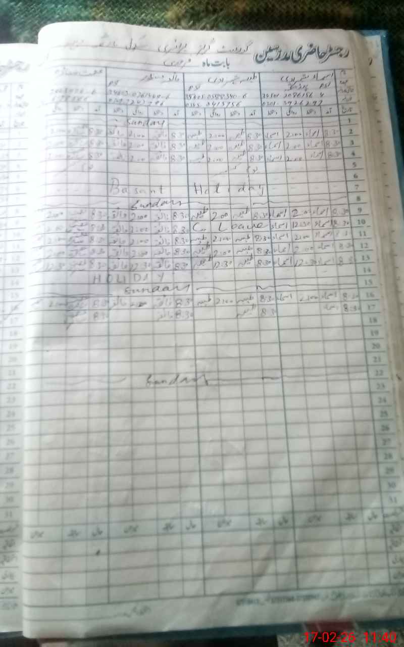 | Name: AS**** SH**** Designation: (School Headmaster's/Headmistress's) PST Phone/Cell Number: 03**** |