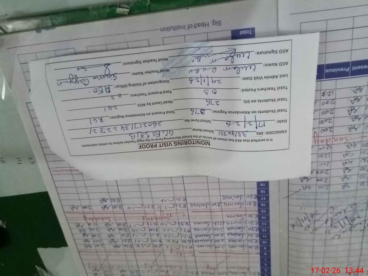 | Certified that this School was Inspected by the Undersigned MEA/DMO Today and the Information Stated Above is as Per Record. | |||||