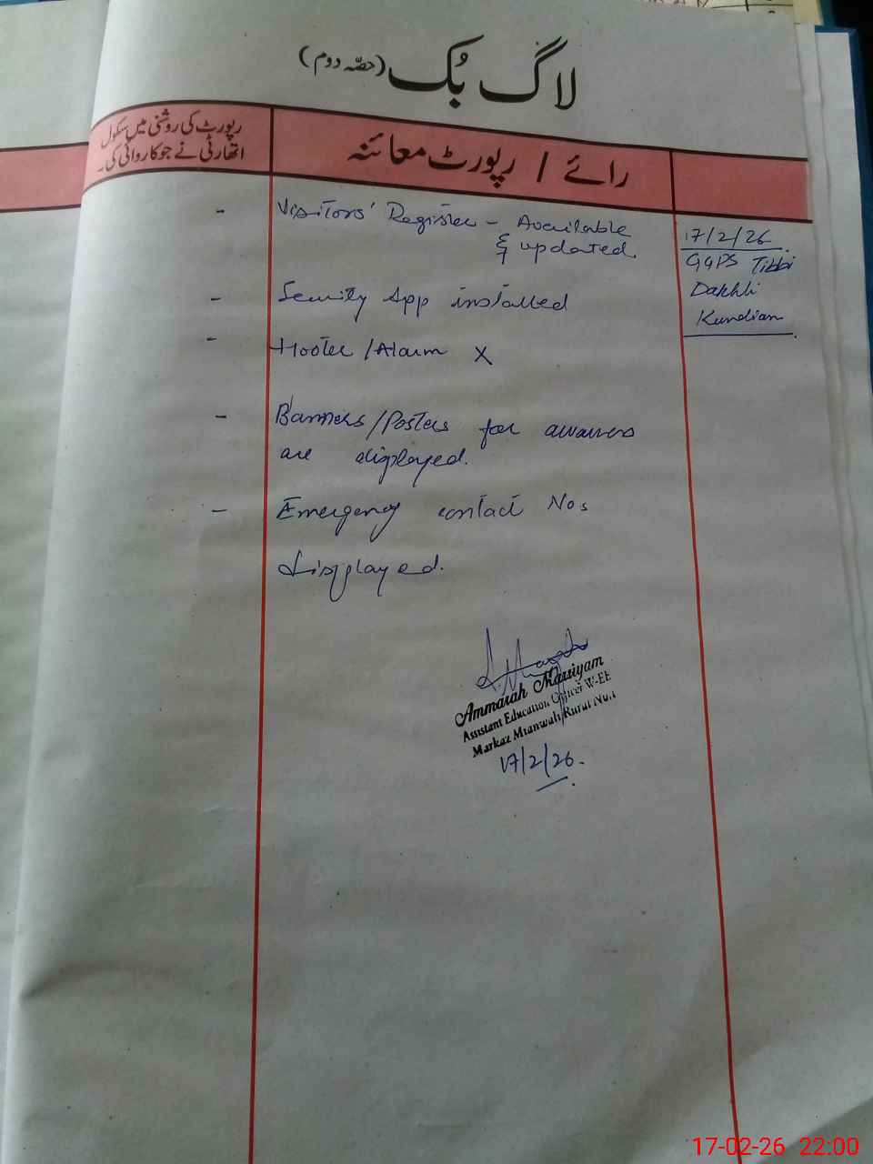 | Certified that this School was Inspected by the Undersigned MEA/DMO Today and the Information Stated Above is as Per Record. | |||||