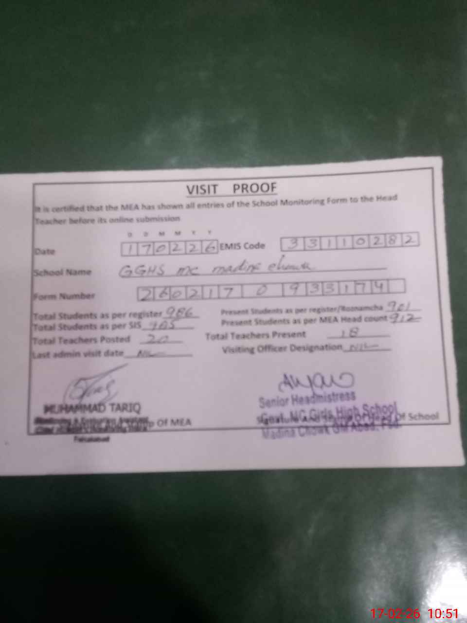 | EMIS Code: 33110282 | Name of School: GGHS MC MADINA CHOWK G.M. ABAD | |||