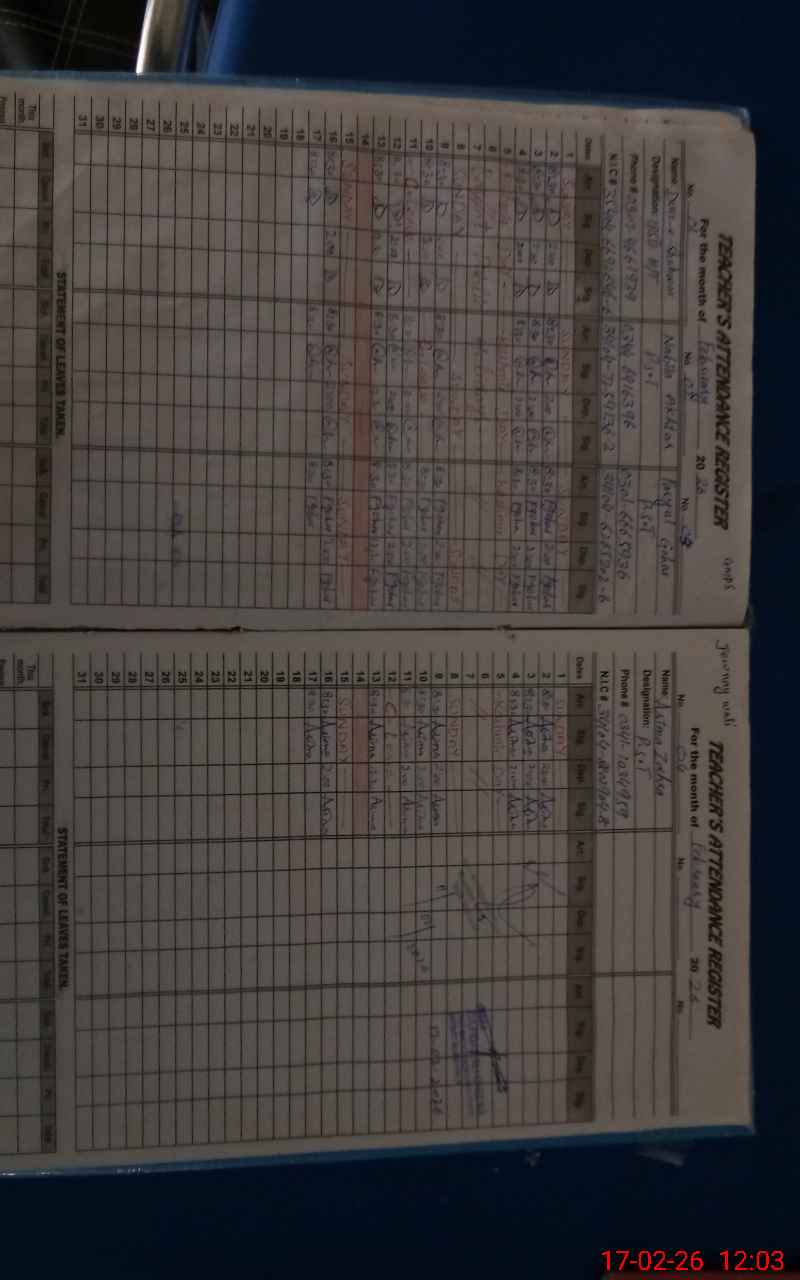 | Name: SA**** KH**** Designation: (School Headmaster's/Headmistress's) PST/PTC/JV Phone/Cell Number: 03**** |