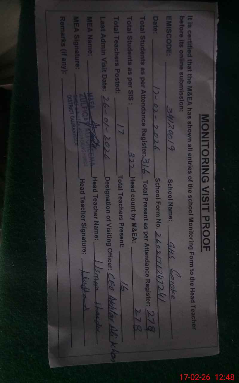 | EMIS Code: 34120019 | Name of School: GHS SAROKE | |||