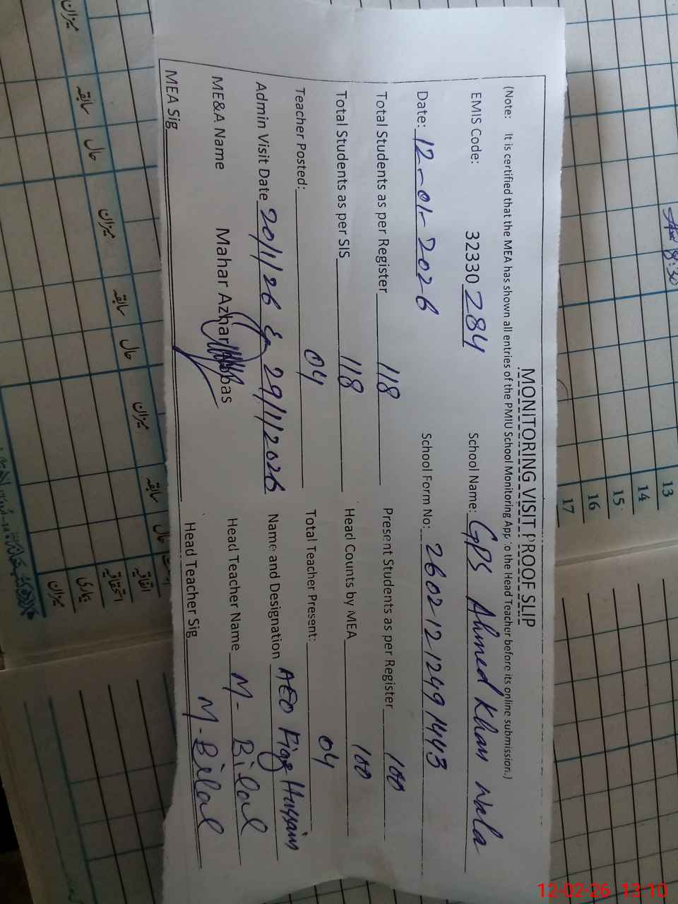 | EMIS Code: 32330284 | Name of School: GPS AHMAD KHAN WALA | |||