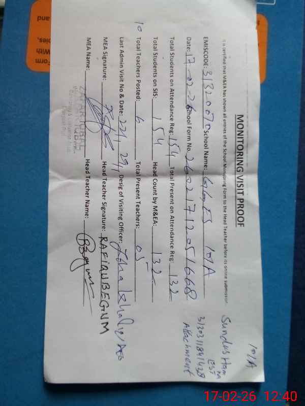 | Certified that this School was Inspected by the Undersigned MEA/DMO Today and the Information Stated Above is as Per Record. | |||||