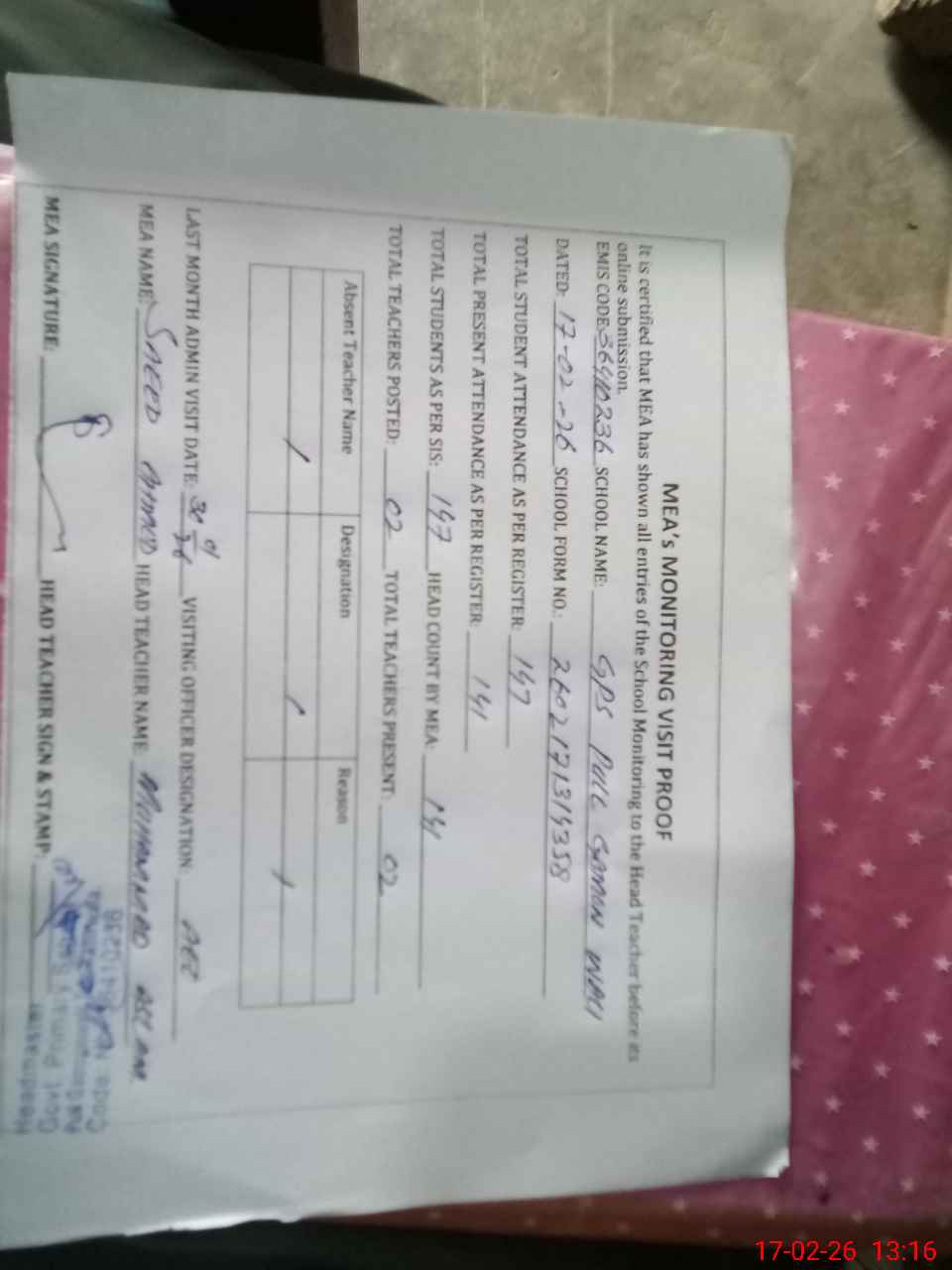 | EMIS Code: 36410236 | Name of School: GPS PUL GAMOON WALI, SARAI SIDHU | |||