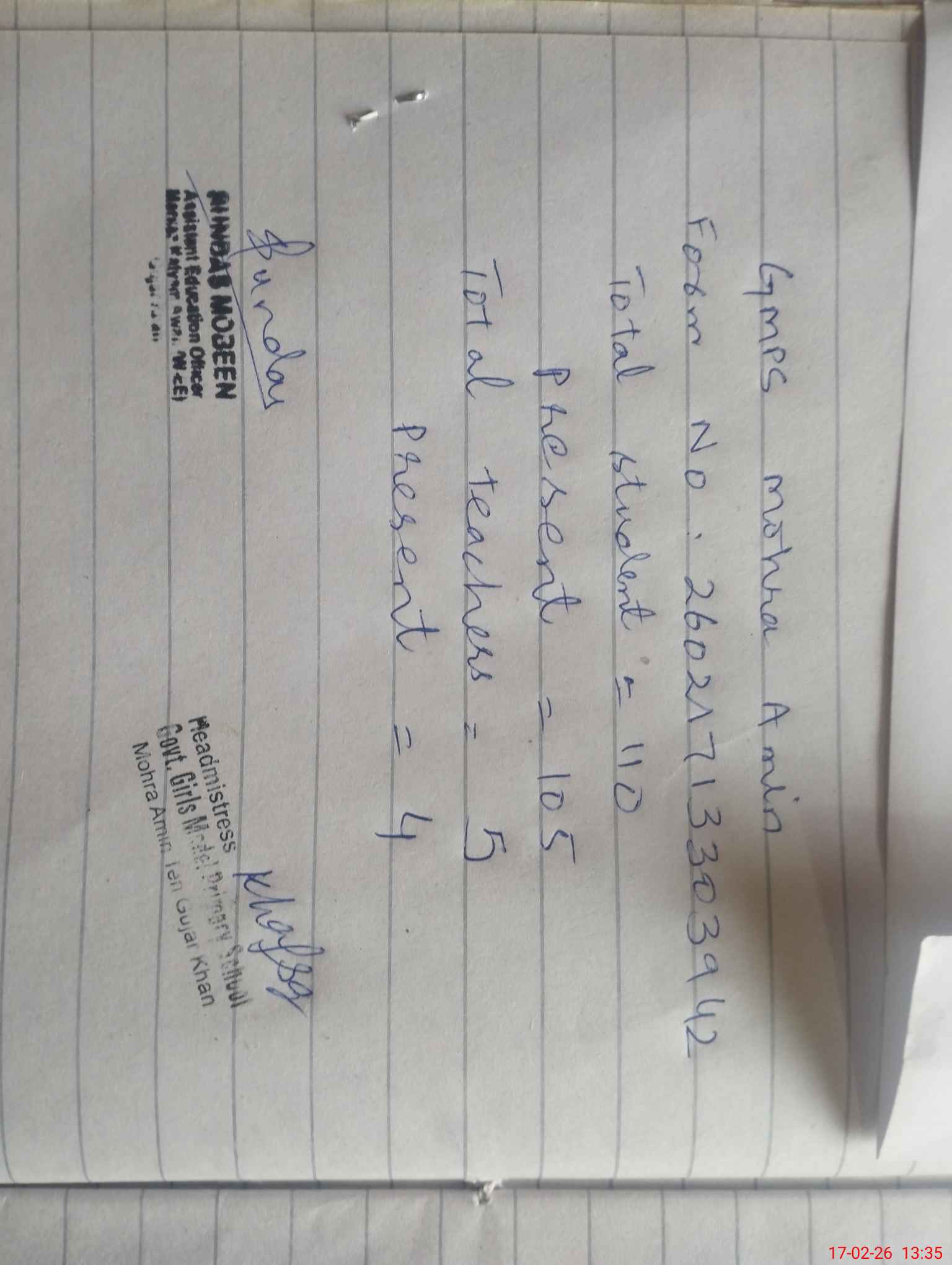 | EMIS Code: 37360591 | Name of School: GGPS MODEL MOHRA AMIN | |||