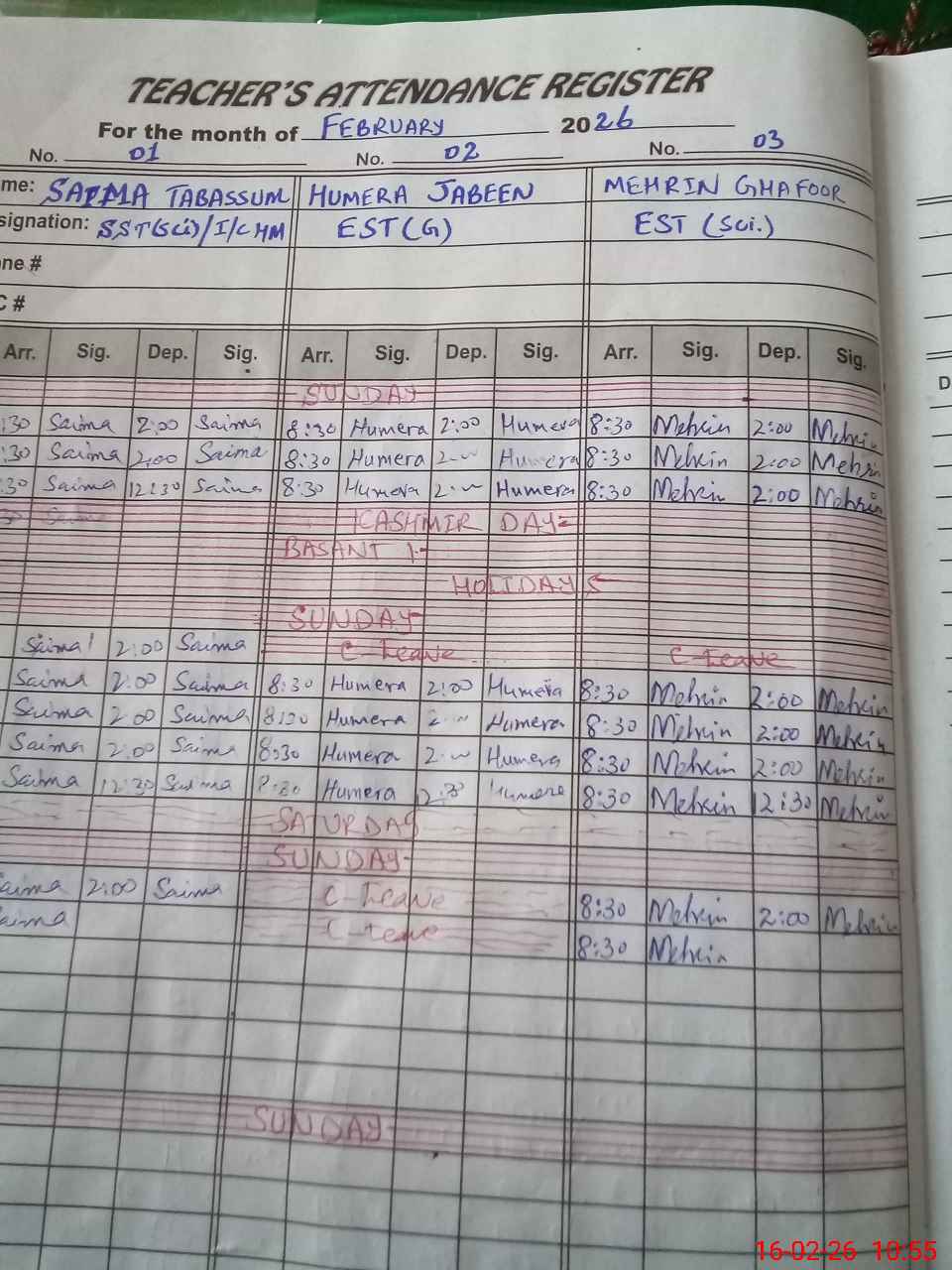 | Name: Sa**** Ta**** Designation: (School Headmaster's/Headmistress's) SST (Science ) Phone/Cell Number: 03**** |