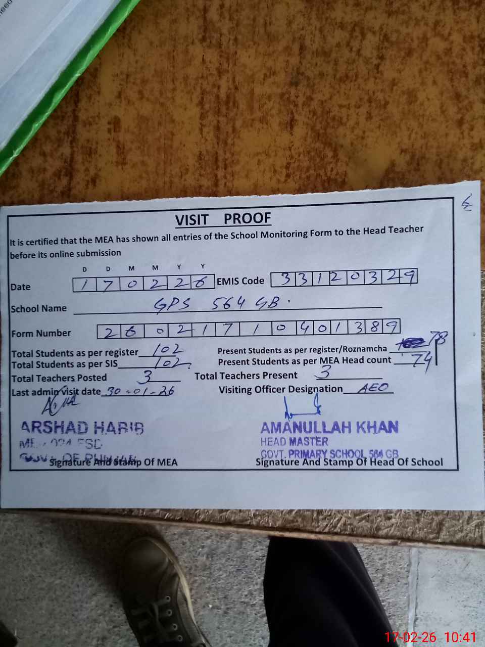 | EMIS Code: 33120329 | Name of School: GPS 564 GB | |||
