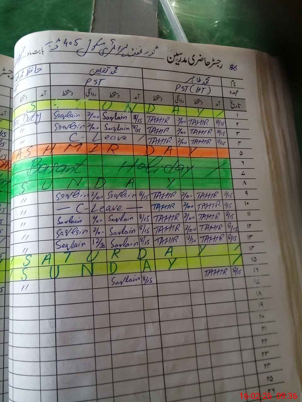 | Leave | Duty | Absent | Maternity | Medical | Ex- Pak |