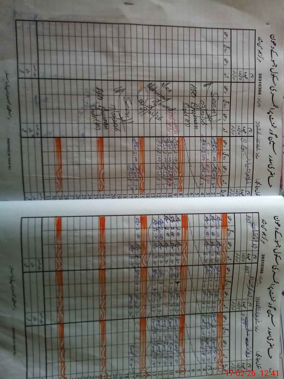 | CNIC | Full Name | Designation | R/C | Absence During Last Calender Month |