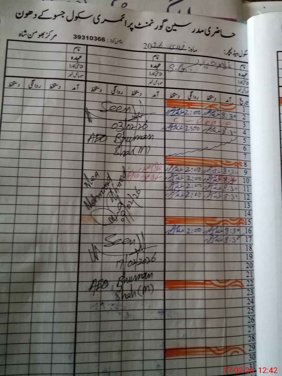 | Attendance Register | Head Teacher | MEA with School | Visit Proof |