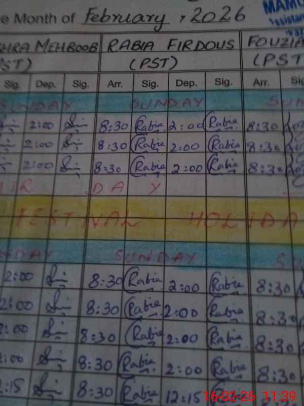 | Monitoring Date: 16-02-2026 | Start Time: 16-02-2026 11:15 AM | End Time: 16-02-2026 11:40 AM | Name of MEA: Ab**** Ha**** | |