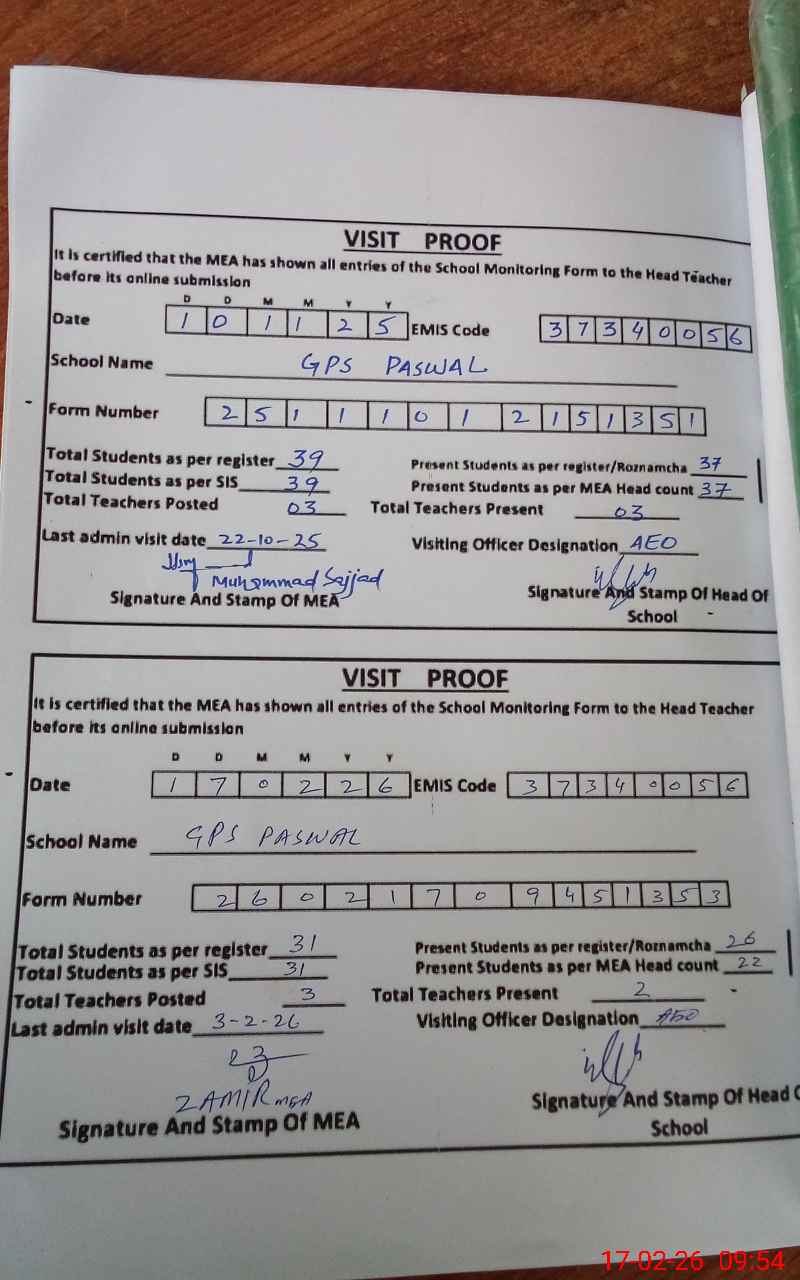 | EMIS Code: 37340056 | Name of School: GPS PASWAL | |||