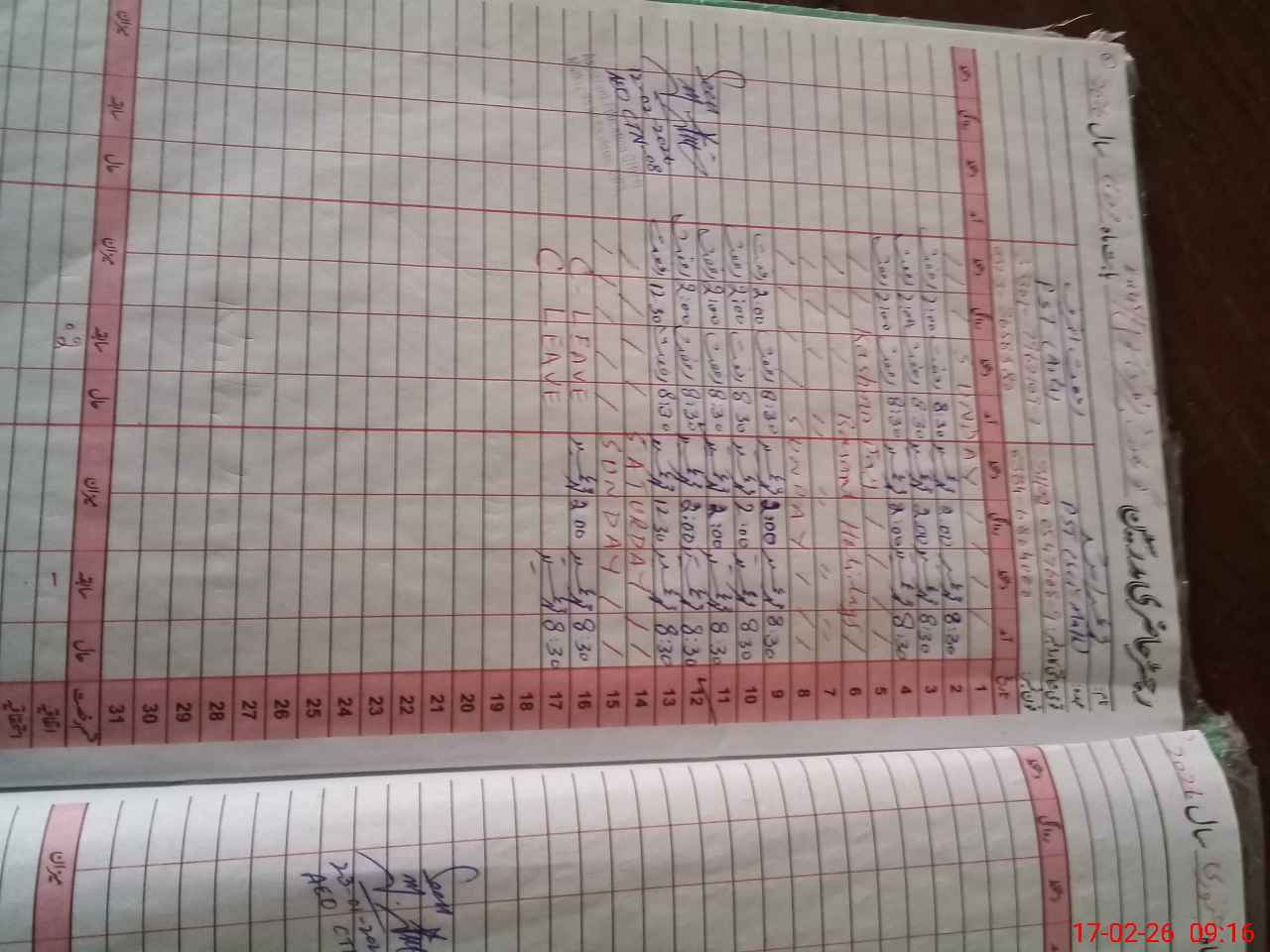 | CNIC | Full Name | Designation | R/C | Absence During Last Calender Month |