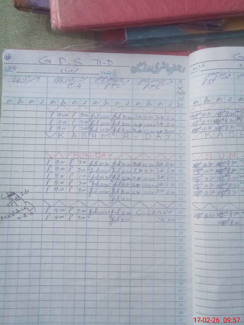 | CNIC | Full Name | Designation | R/C | Absence During Last Calender Month |