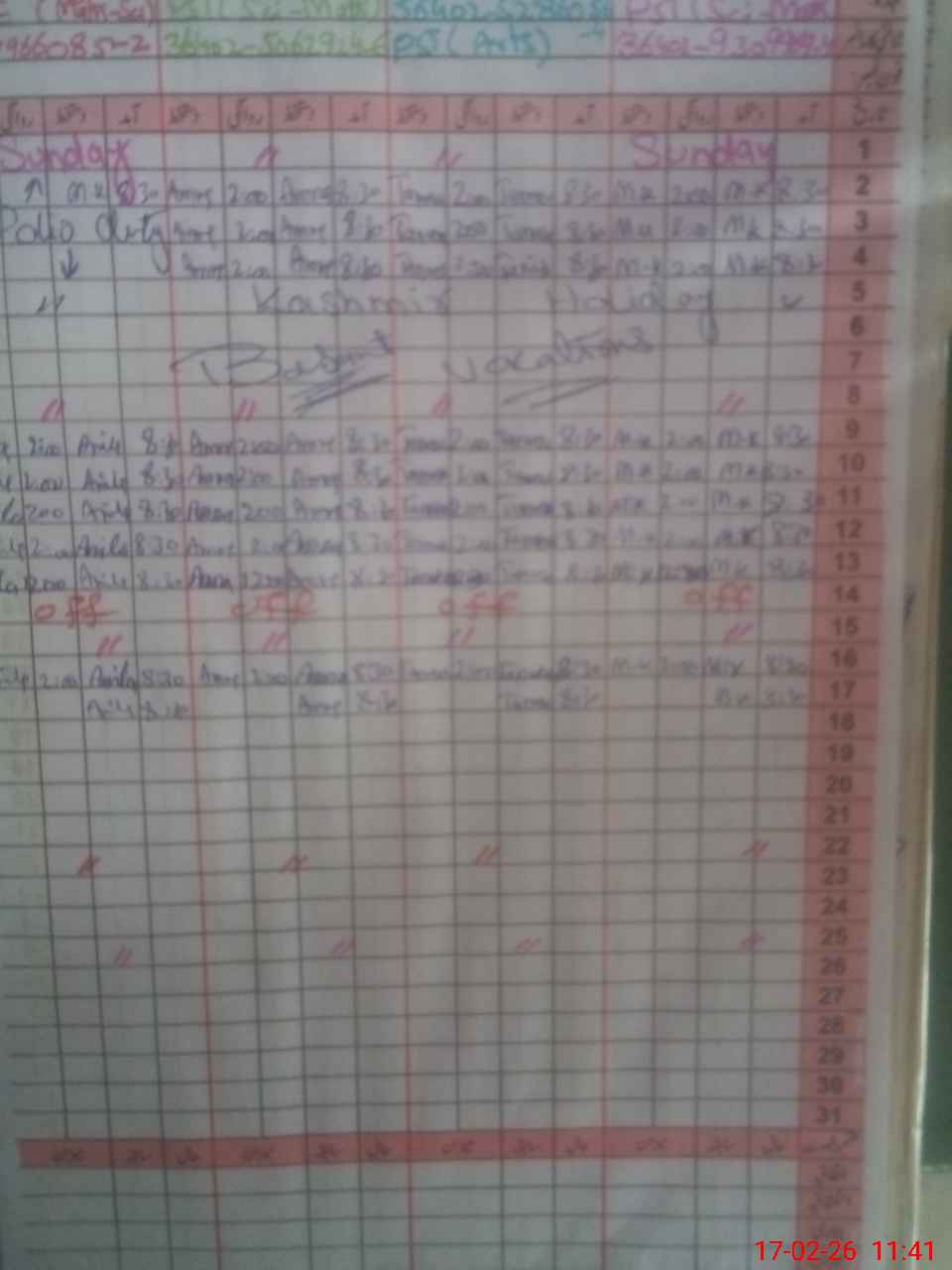 | Leave | Duty | Absent | Maternity | Medical | Ex- Pak |