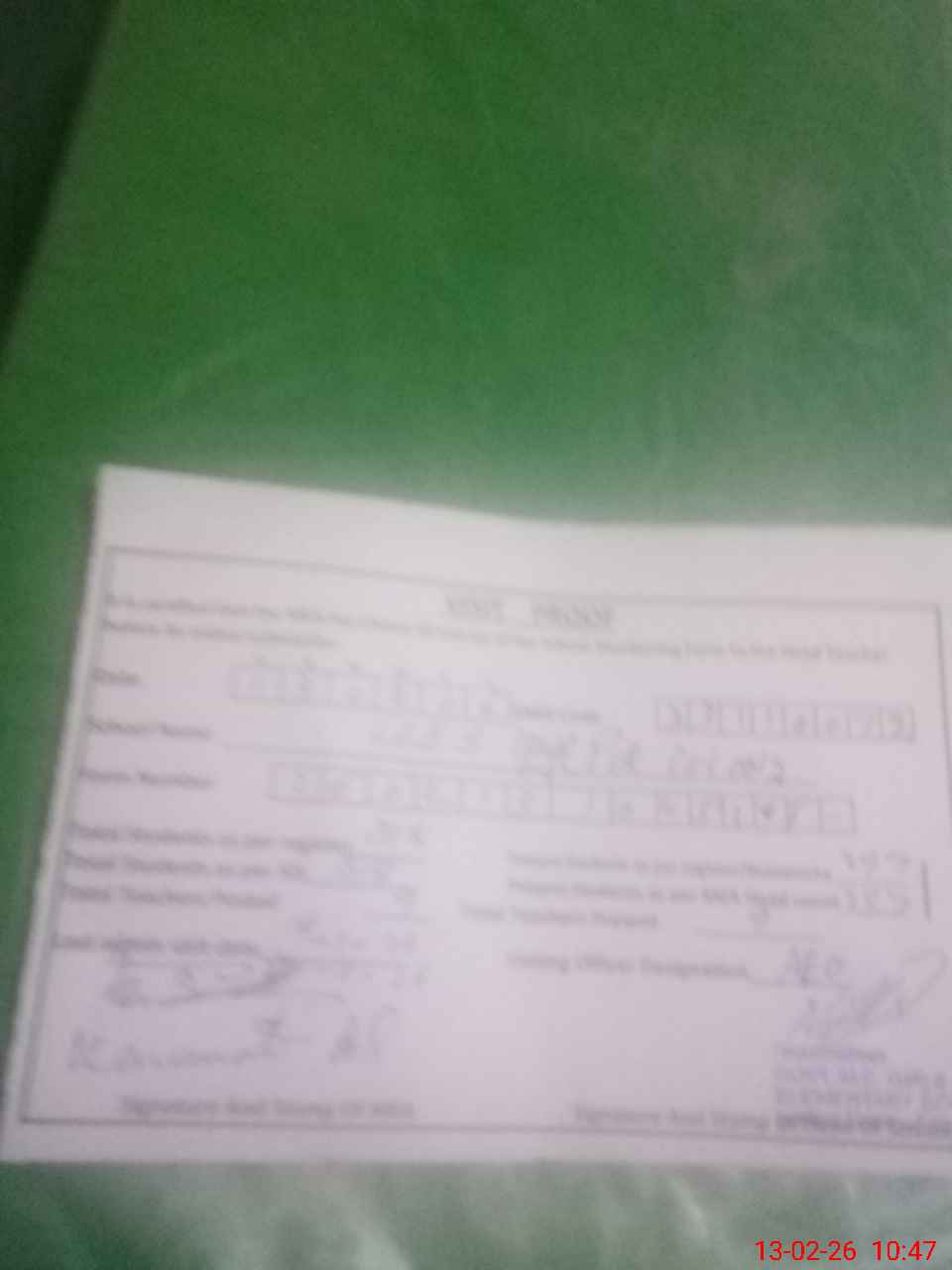 | Attendance Register | Head Teacher | MEA with School | Visit Proof |
