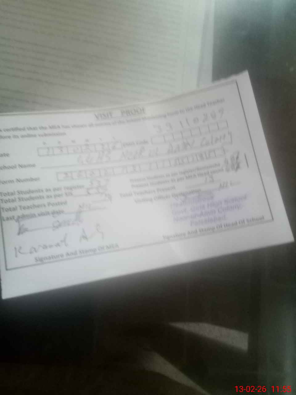 | Certified that this School was Inspected by the Undersigned MEA/DMO Today and the Information Stated Above is as Per Record. | |||||