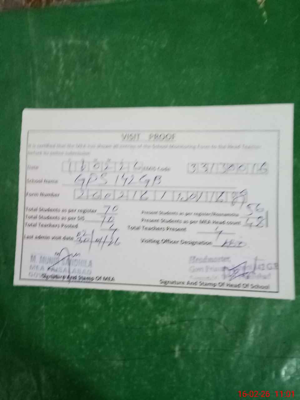 | EMIS Code: 33130016 | Name of School: GPS CHAK 142 GB SAMUNDRI | |||
