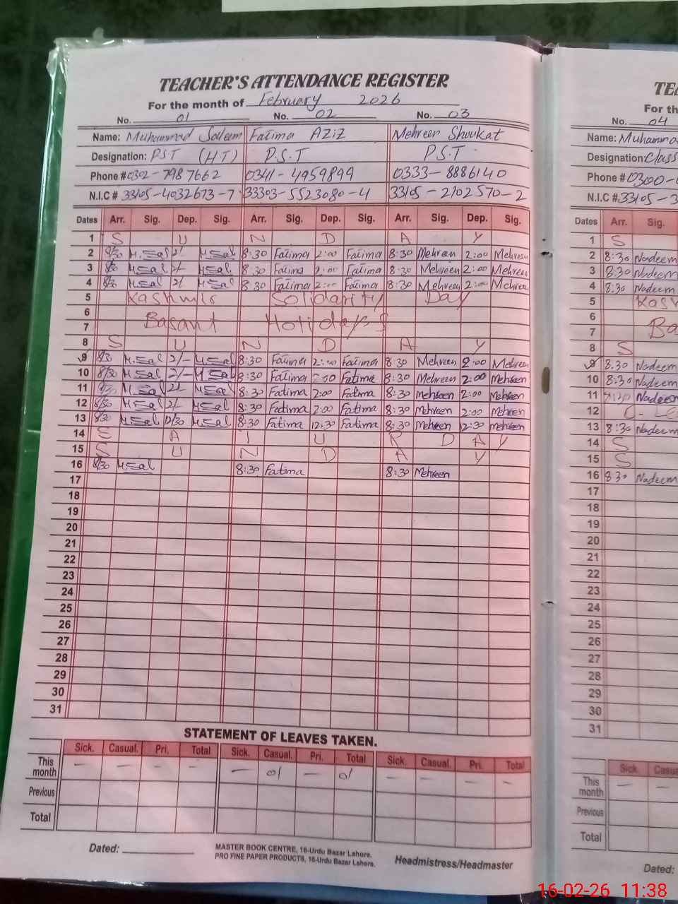 | Name: MU**** SA**** Designation: (School Headmaster's/Headmistress's) PST Phone/Cell Number: 03**** |