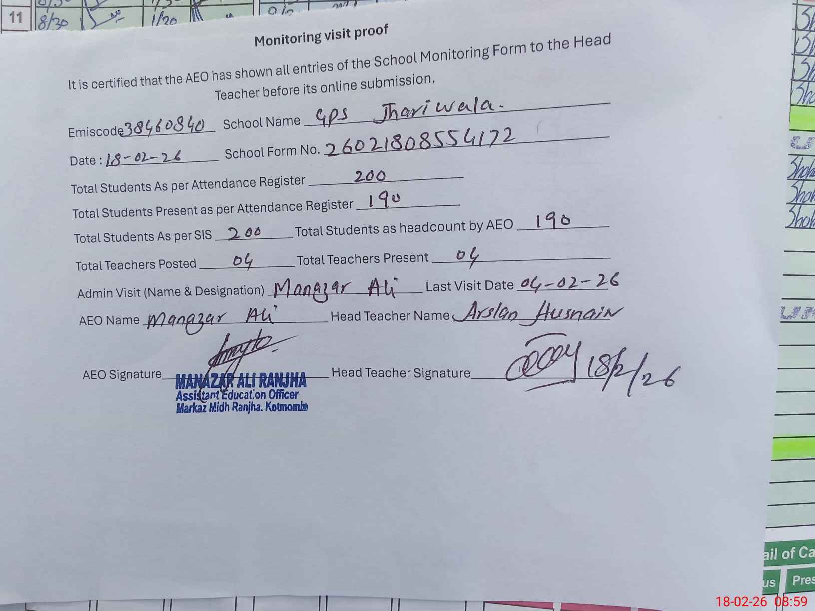 | EMIS Code: 38460840 | Name of School: GPS JHAREY WALA | |||