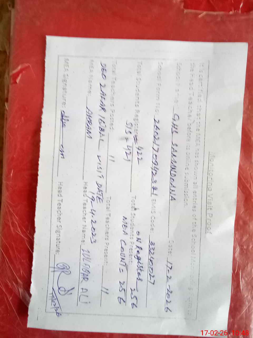 | Certified that this School was Inspected by the Undersigned MEA/DMO Today and the Information Stated Above is as Per Record. | |||||