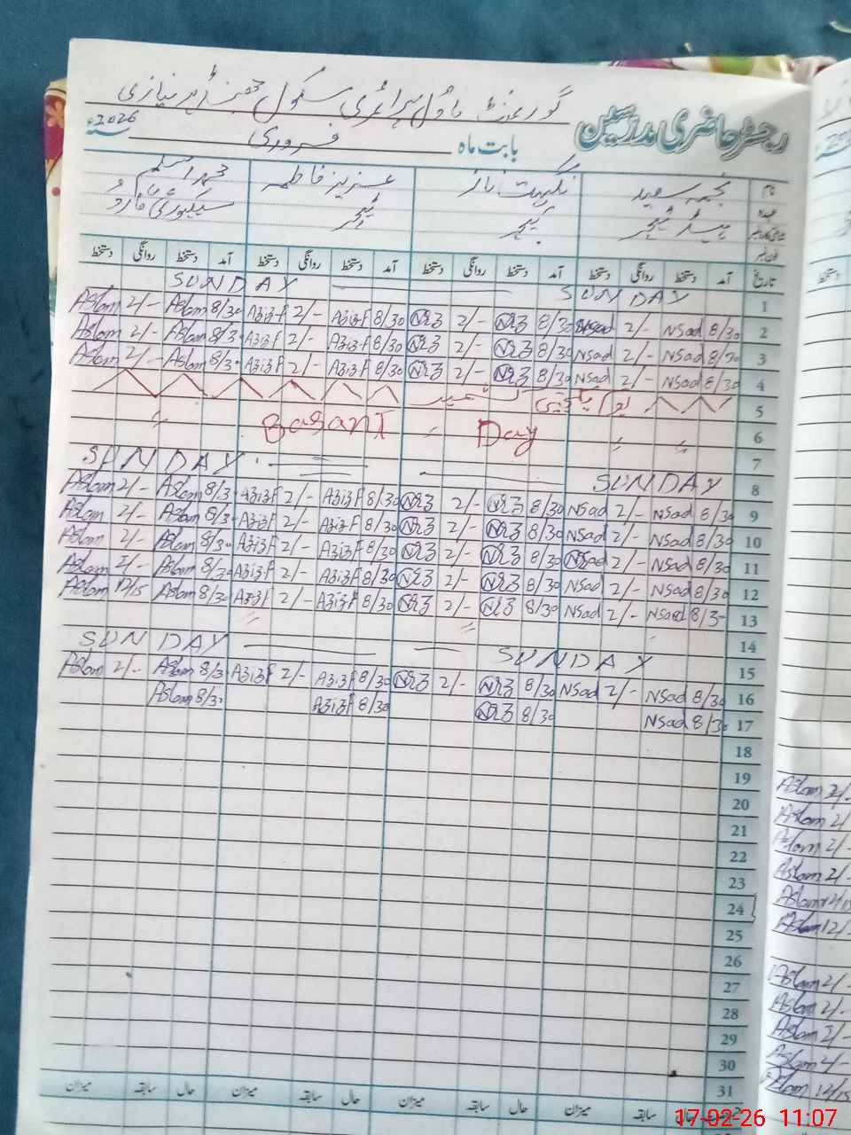 | CNIC | Full Name | Designation | R/C | Absence During Last Calender Month |