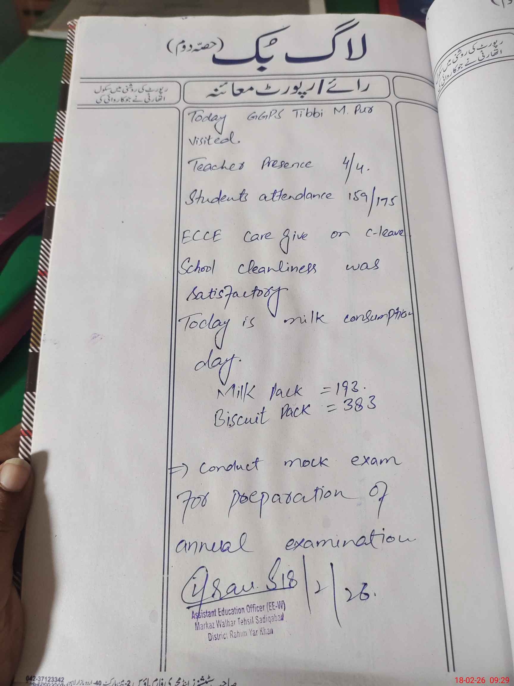 | Certified that this School was Inspected by the Undersigned MEA/DMO Today and the Information Stated Above is as Per Record. | |||||