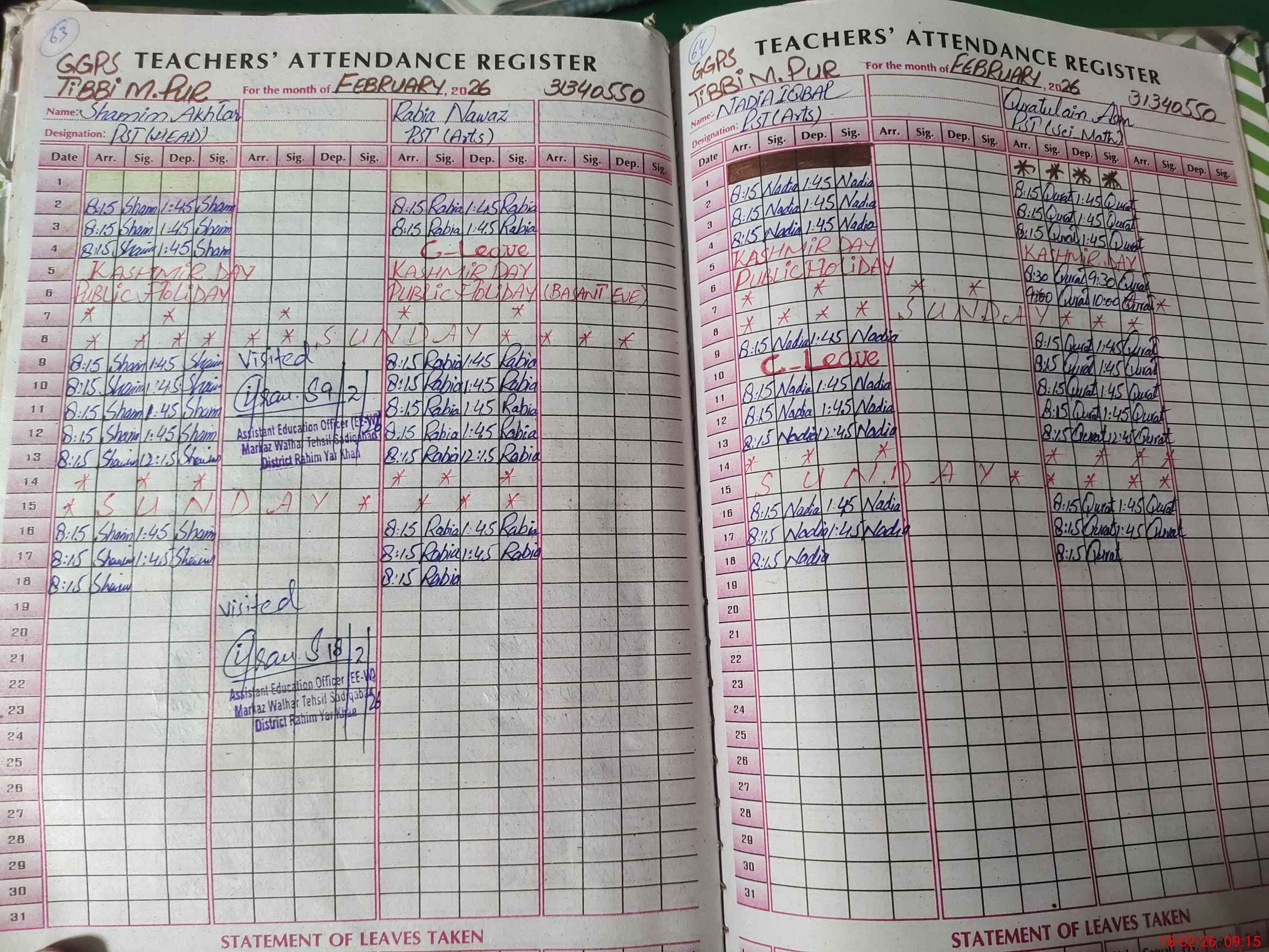 | Attendance Register | Head Teacher | MEA with School | Visit Proof |