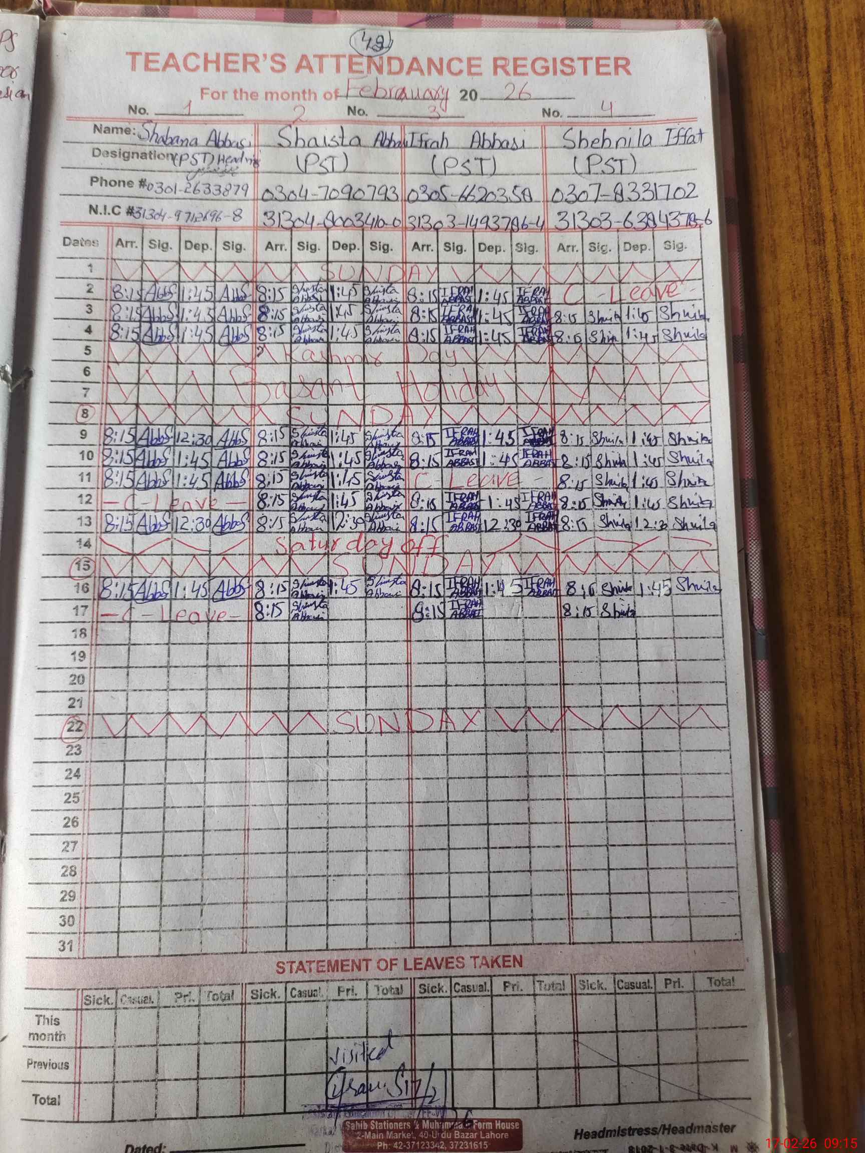 | Name: Sh**** Ab**** Designation: (School Headmaster's/Headmistress's) PST Phone/Cell Number: 03**** |