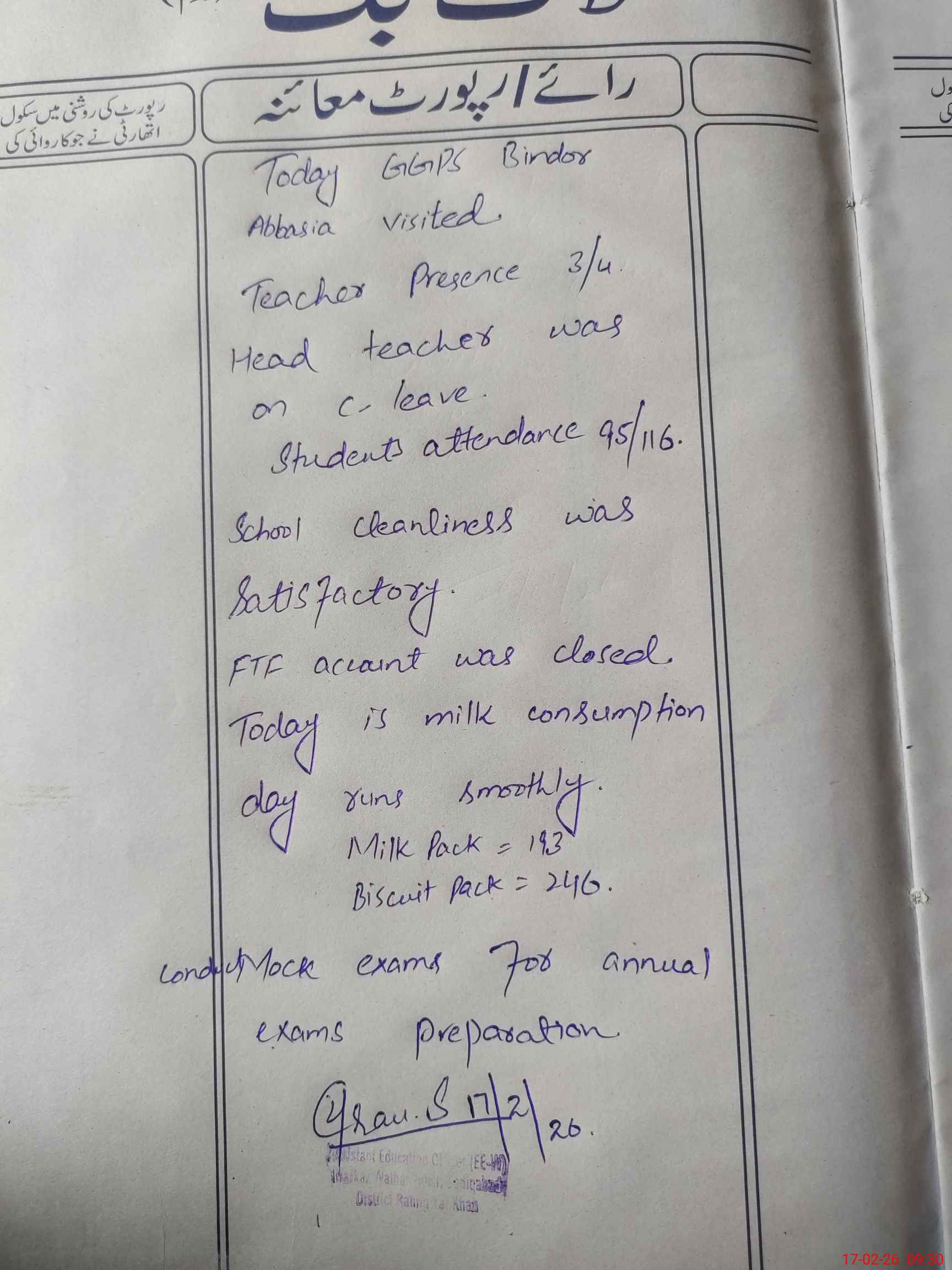 | EMIS Code: 31340554 | Name of School: GGPS BINDORE ABBASIAN | |||