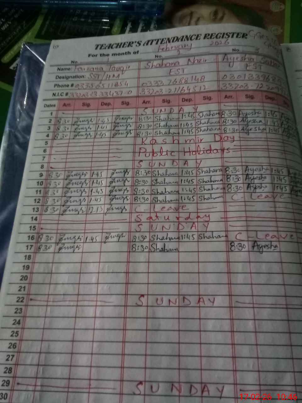| Name: FA**** TA**** Designation: (School Headmaster's/Headmistress's) SST Phone/Cell Number: 03**** |