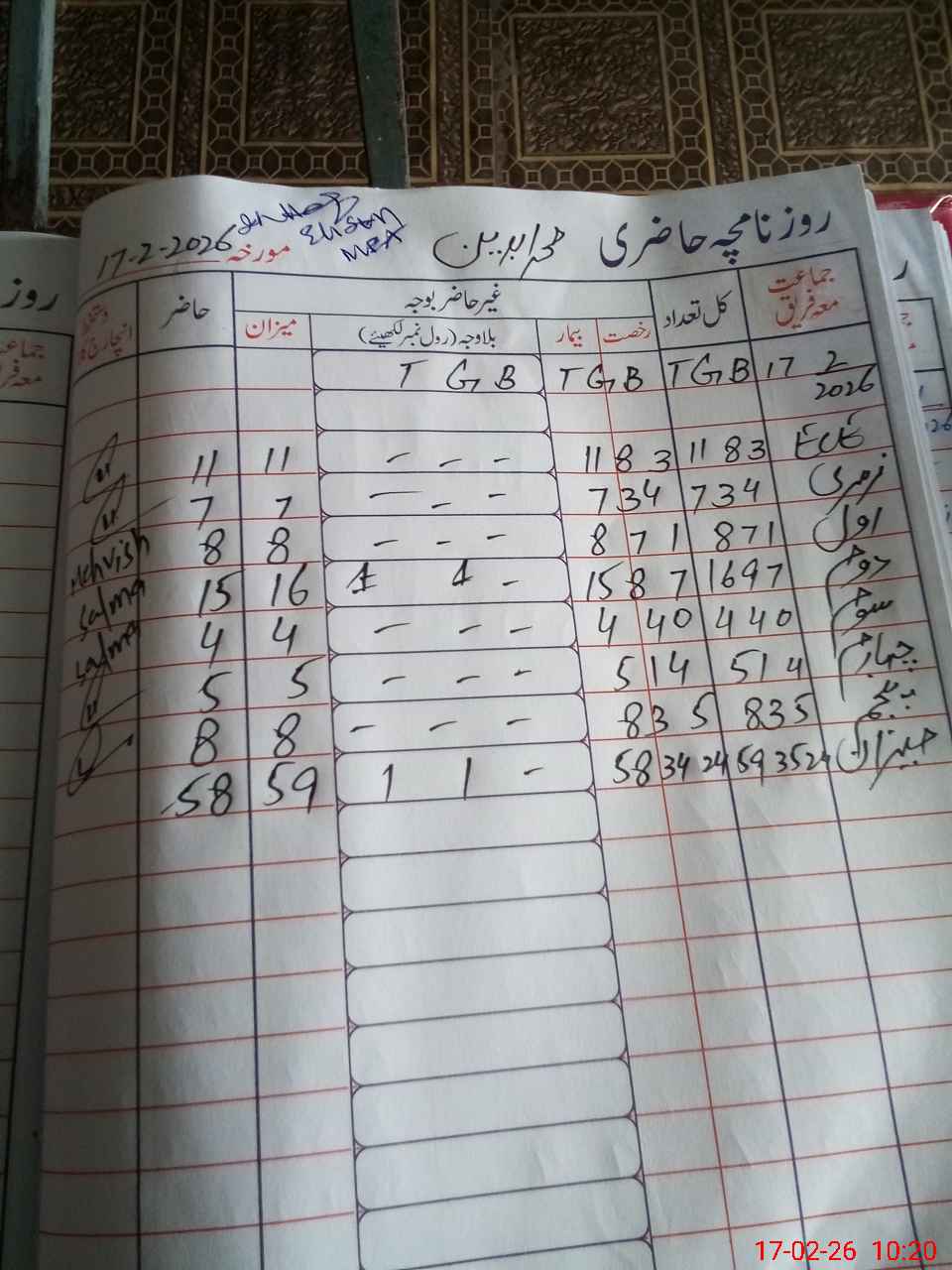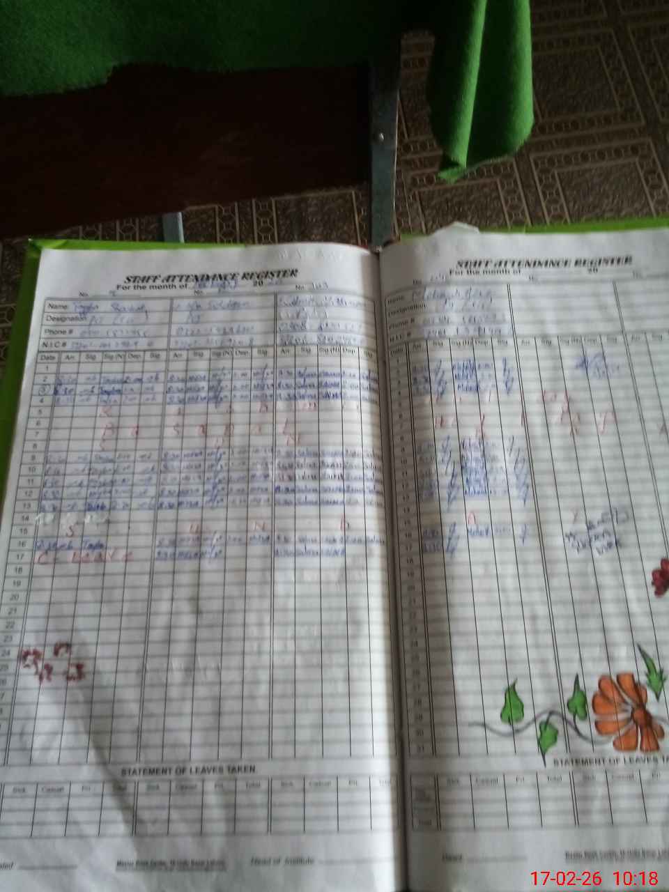 | CNIC | Full Name | Designation | R/C | Absence During Last Calender Month |