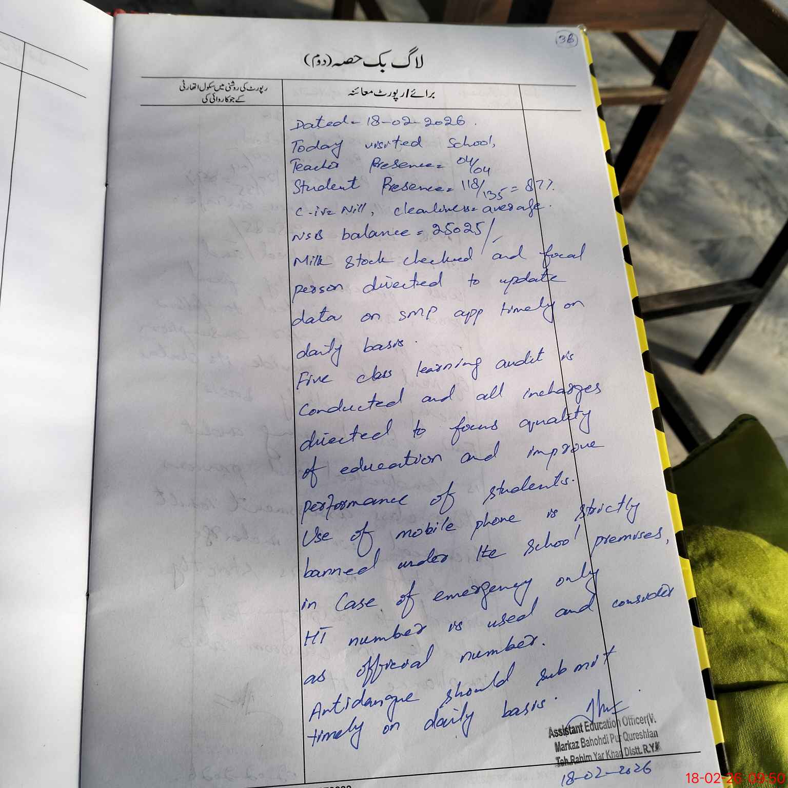 | Monitoring Date: 18-02-2026 | Start Time: 18-02-2026 09:23 AM | End Time: 18-02-2026 09:50 AM | Name of MEA: Za**** Ri**** | |