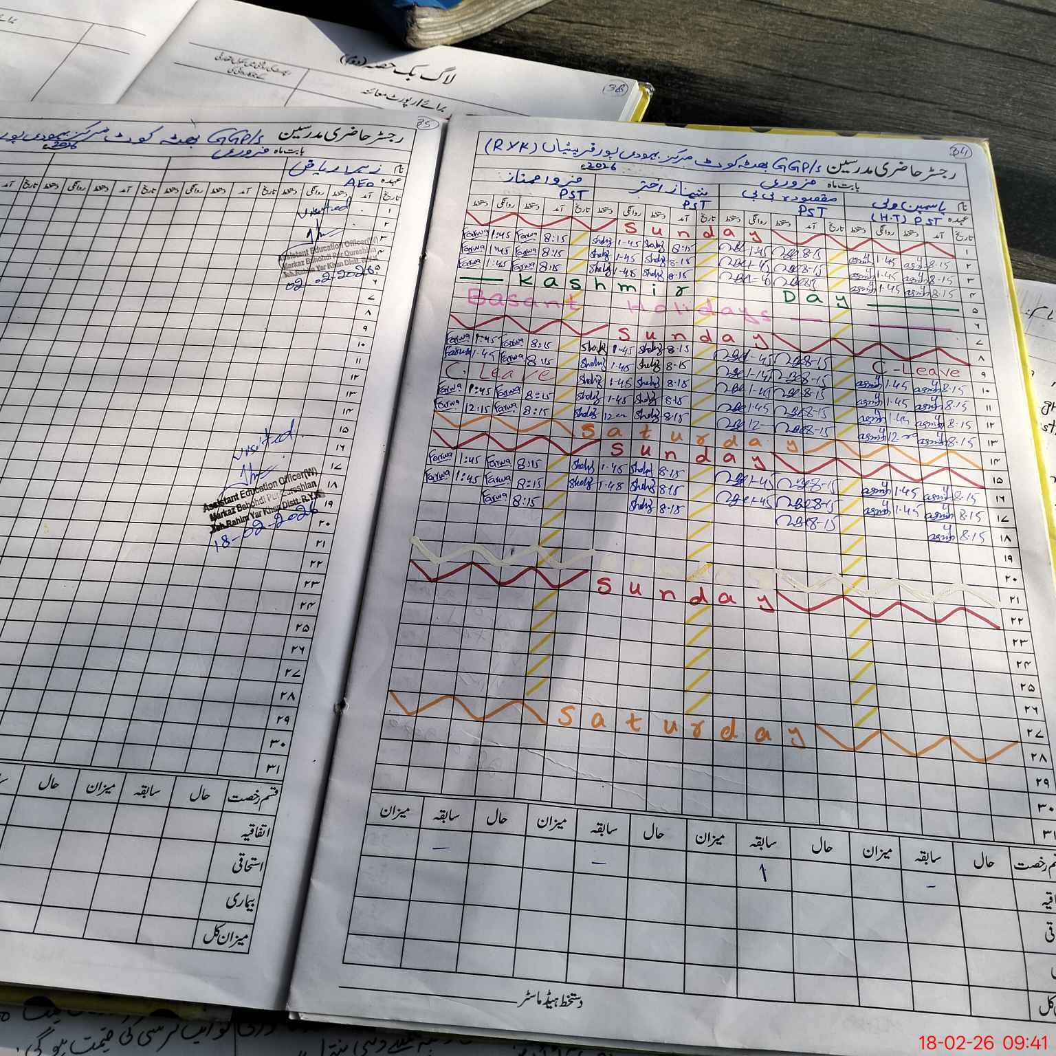 | CNIC | Full Name | Designation | R/C | Absence During Last Calender Month |