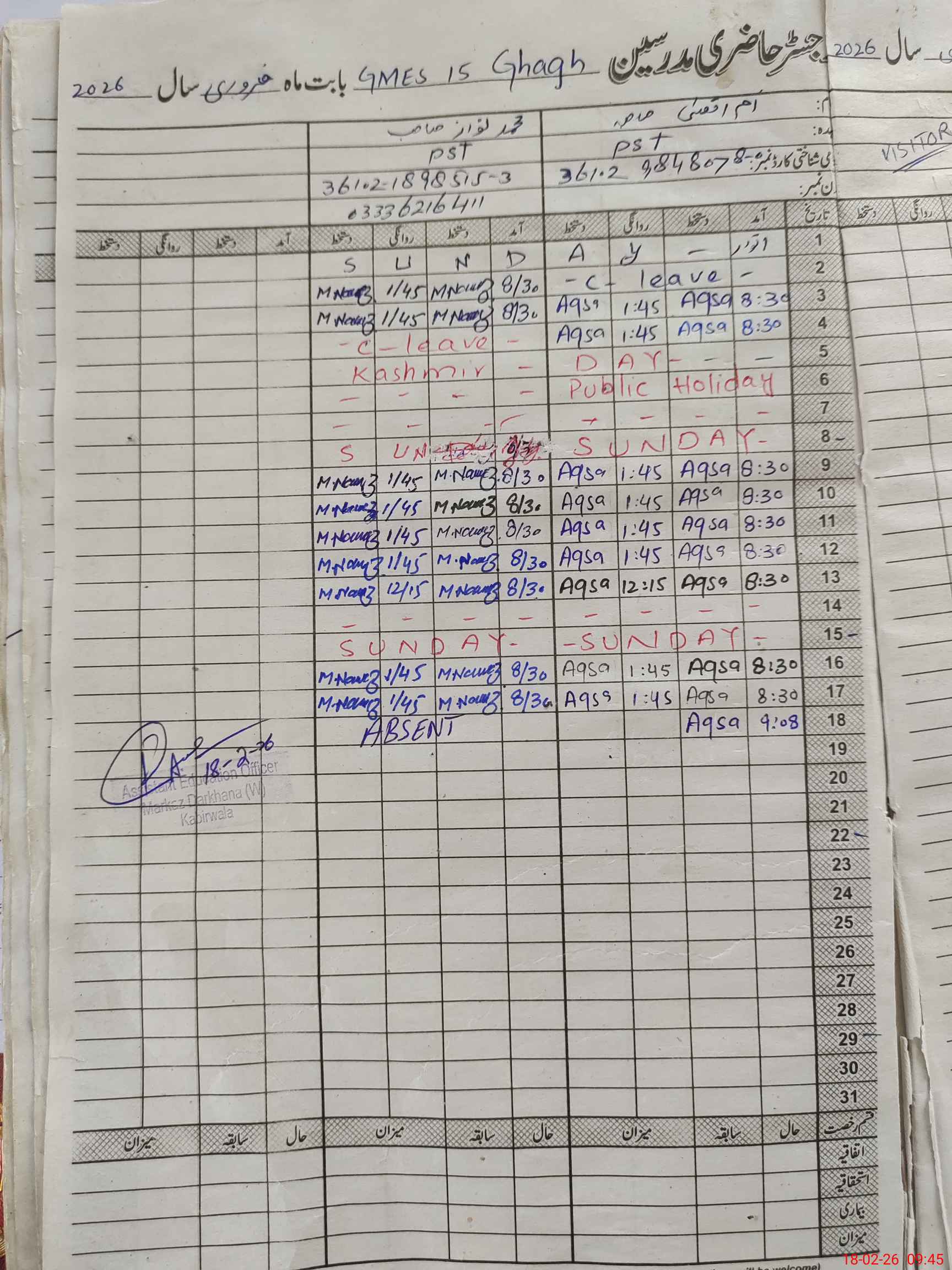 | Name: Um**** Aq**** Designation: (School Headmaster's/Headmistress's) ESE(ARTS) Phone/Cell Number: 03**** |