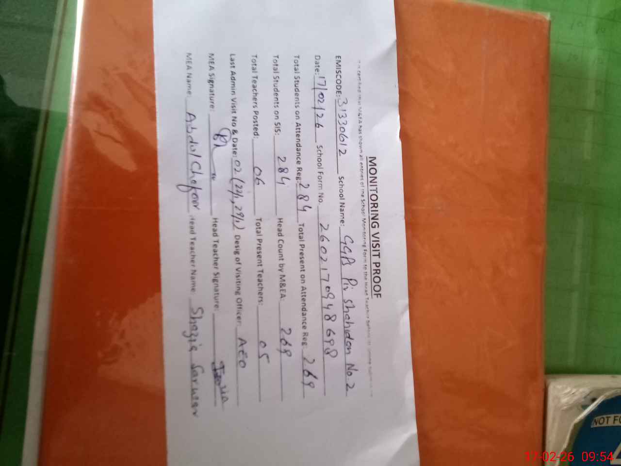 | EMIS Code: 31330612 | Name of School: GGPS PIR SHAHIDAN NO.2 | |||