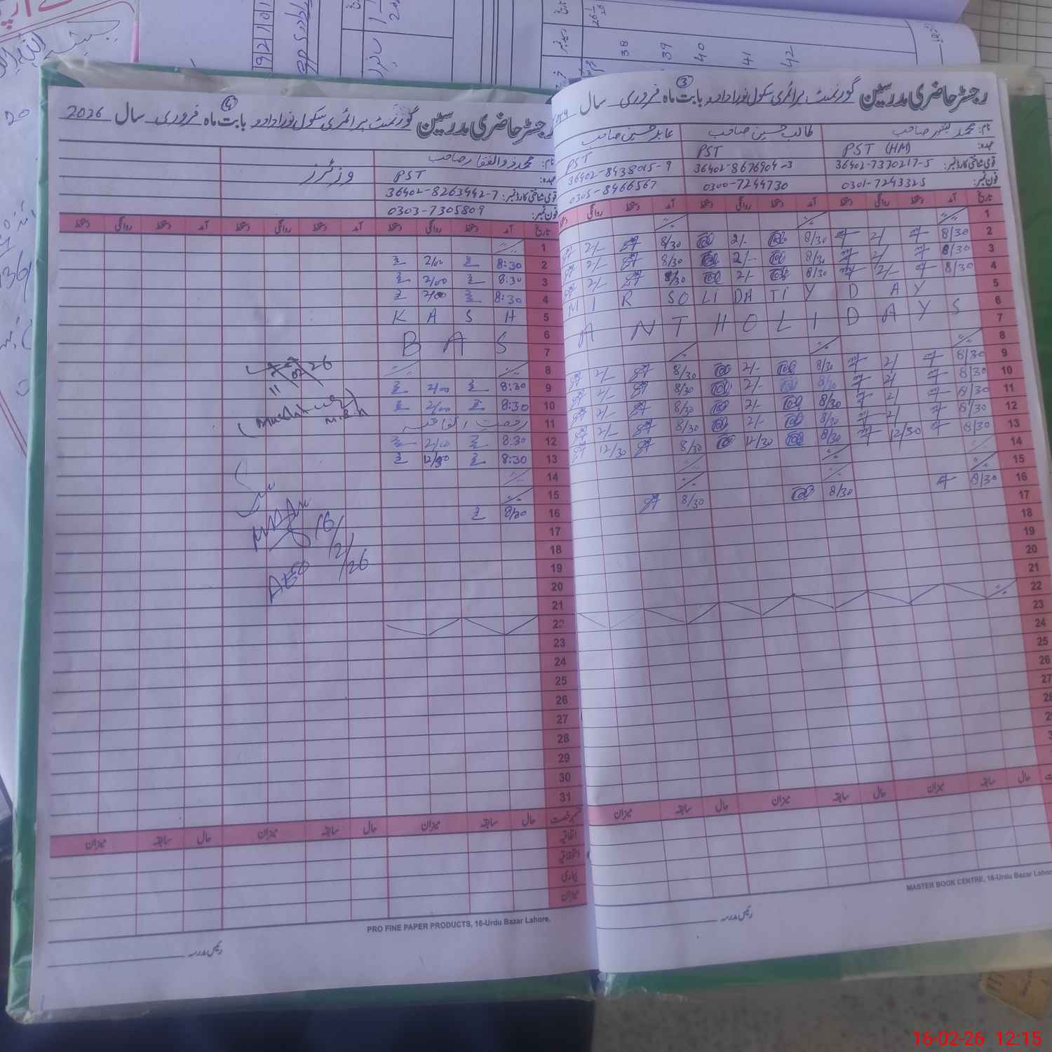 | Name: Mu**** Ba**** Designation: (School Headmaster's/Headmistress's) PST Phone/Cell Number: 03**** |