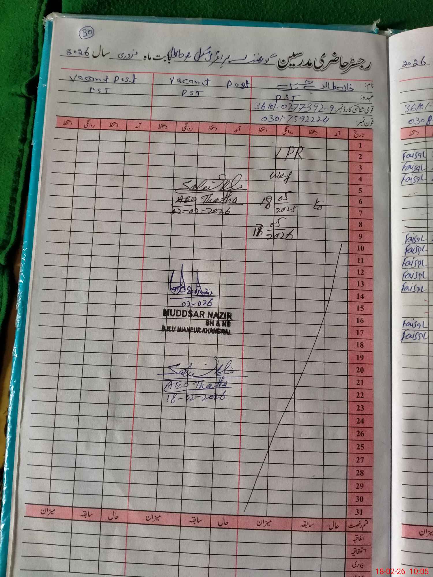 | Name: MYO**** SO**** Designation: (School Headmaster's/Headmistress's) PST Phone/Cell Number: 03**** |