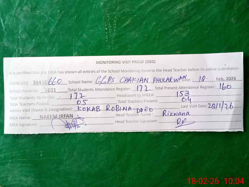 | EMIS Code: 38410660 | Name of School: GGPS CHAKIAN PHULARWAN | |||