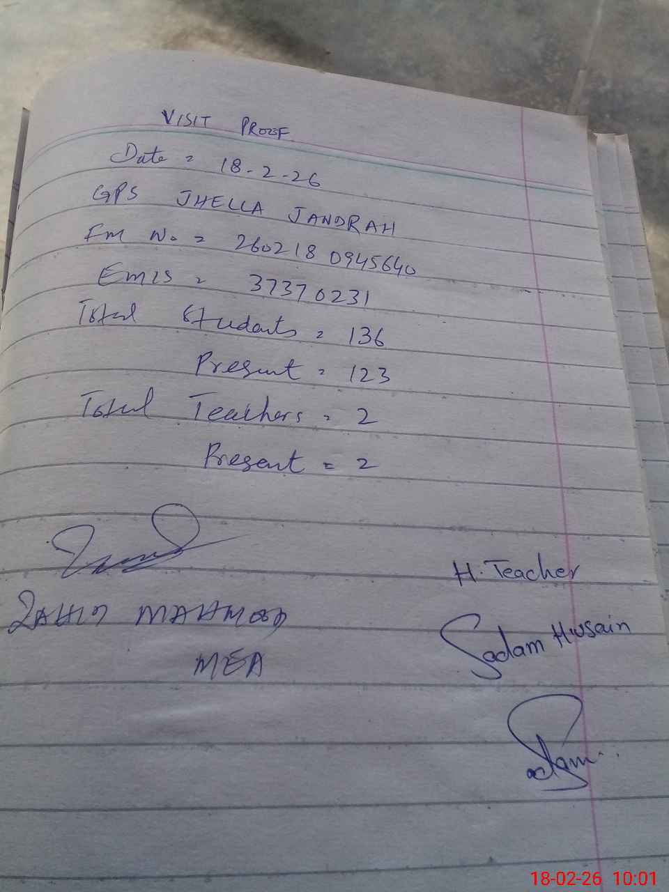 | EMIS Code: 37370231 | Name of School: GPS JHELLA JANDRAH | |||