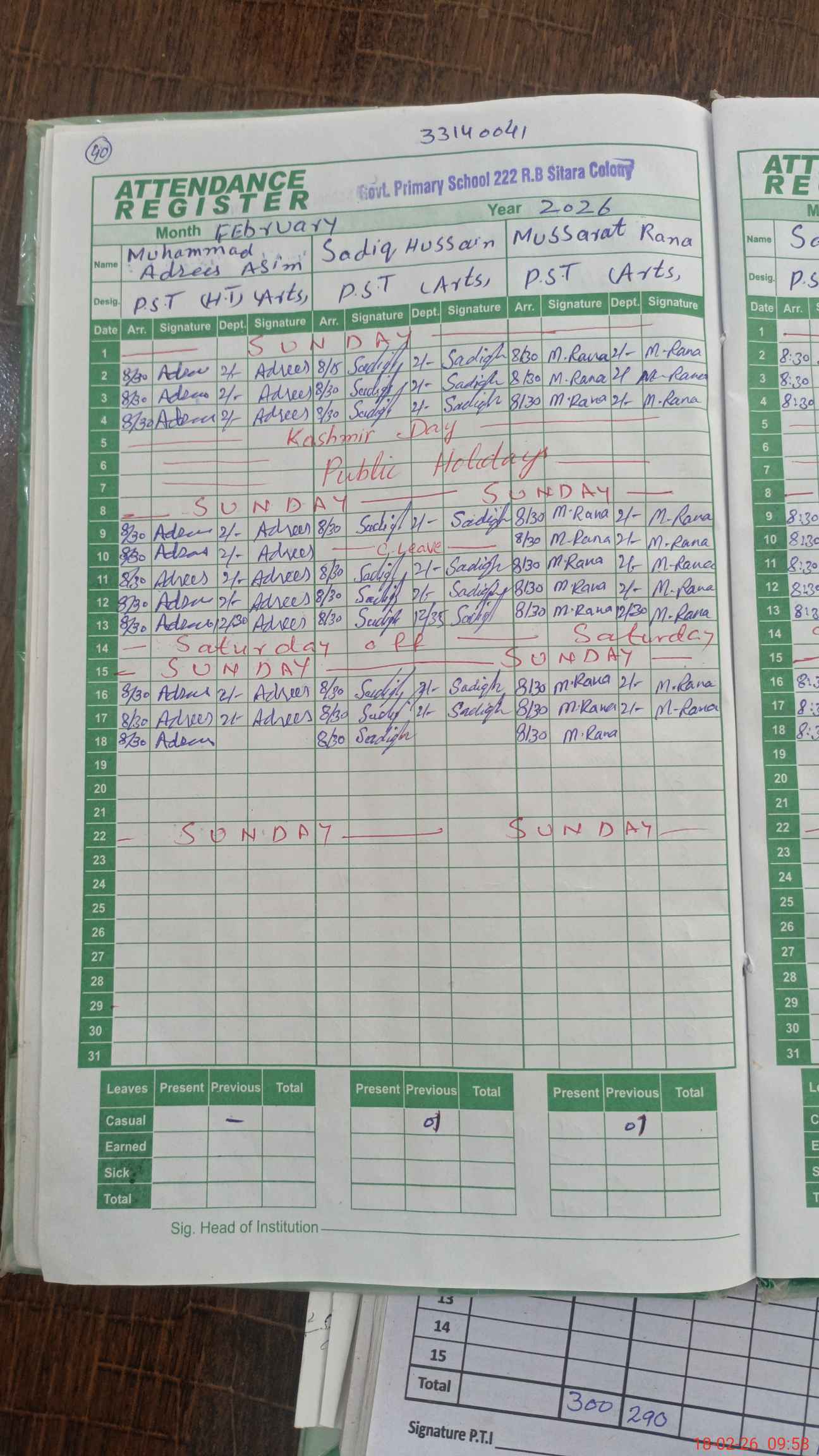 | 33**** | Fa**** Ha**** | PST Science/Maths | Regular | 0 | 0 | 0 | 0 | 0 | 0 | 0 | 0 | 0 | Casual |
