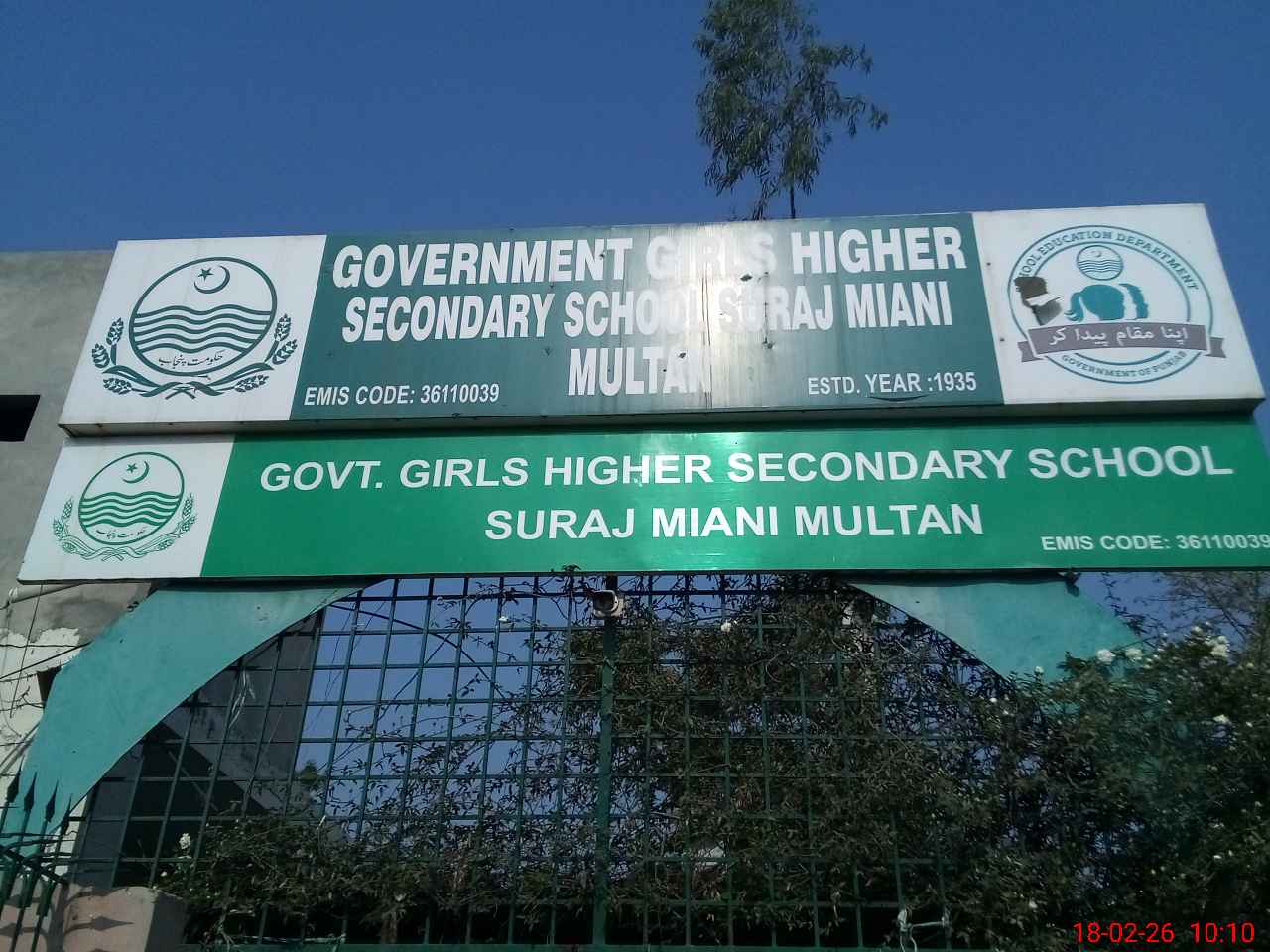 | EMIS Code: 36110039 | Name of School: GGHSS SURAJ MIANI MULTAN | |||