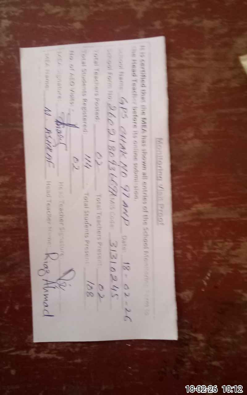 | EMIS Code: 31310245 | Name of School: GPS CHAK NO 97 ANP | |||