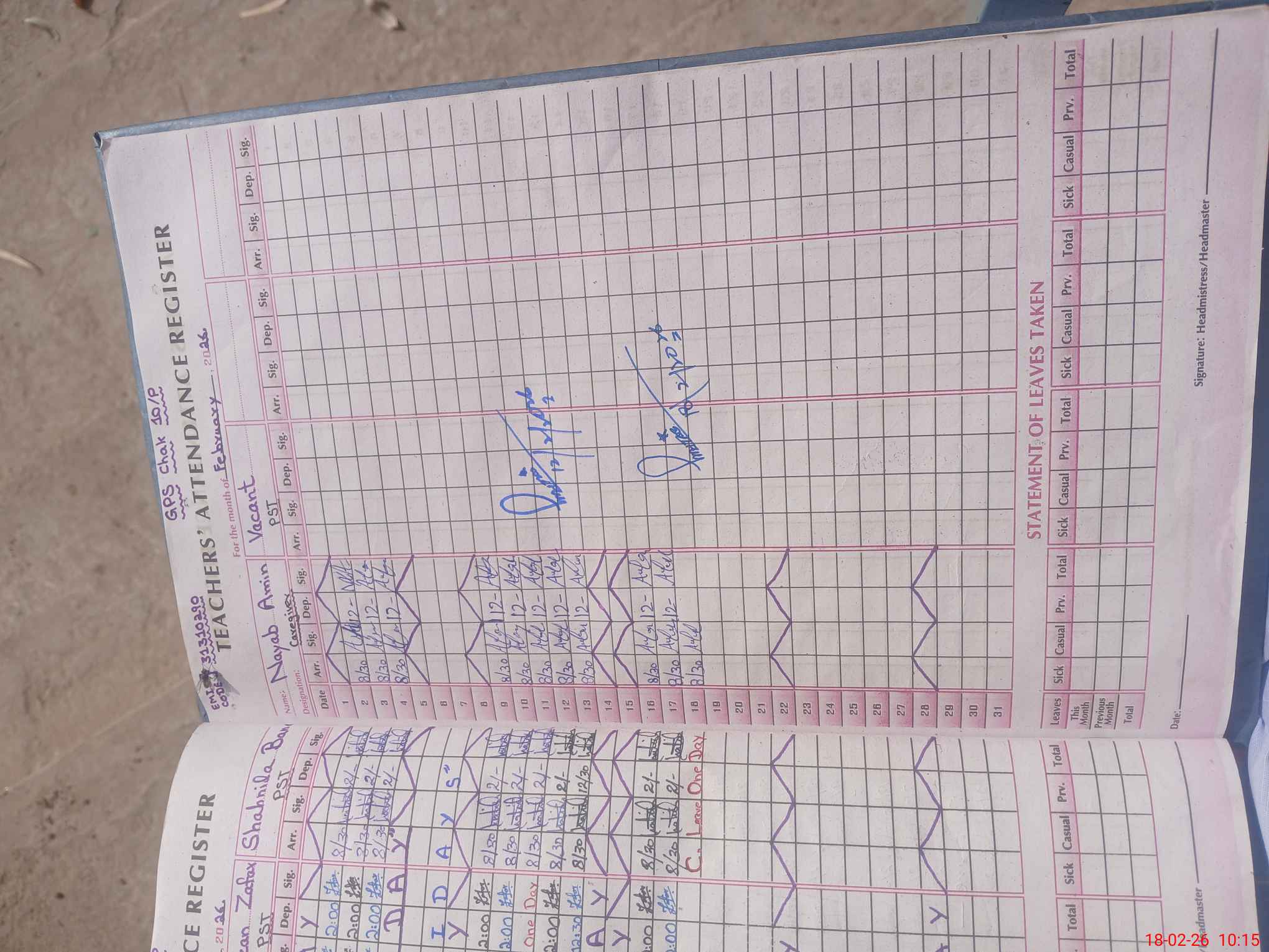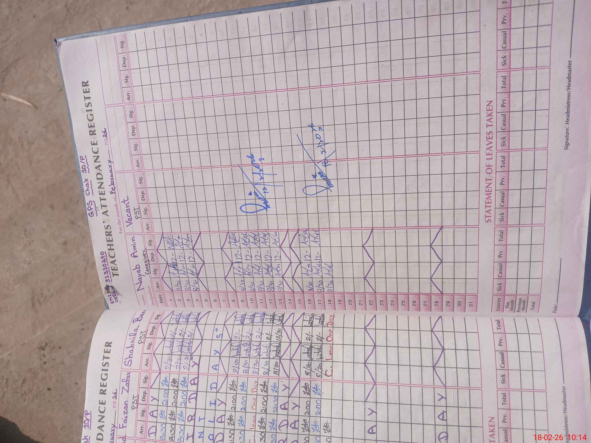 | Name: Aa**** Ra**** Designation: (School Headmaster's/Headmistress's) PST Phone/Cell Number: 03**** |